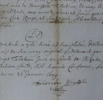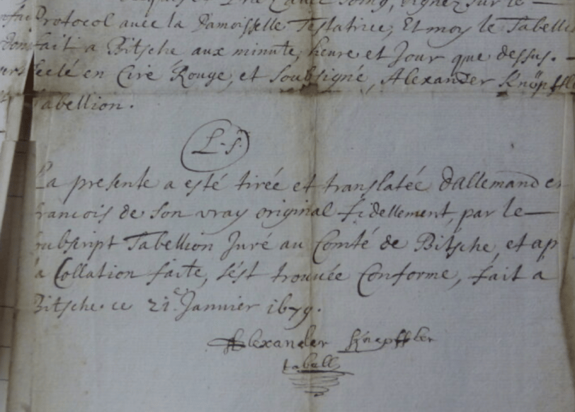 Pour moi, en tant que traducteur assermenté, cet acte représente beaucoup plus qu’un simple document légal. La traduction certifiée qu’il contient mérite une attention particulière. Elle offre un aperçu sur la façon dont la langue et la culture ont évolué depuis le XVIIe siècle, tout en reflétant les pratiques notariales de cette époque. Une telle traduction peut fournir des informations précieuses pour ceux qui s'intéressent à l'histoire des langues et aux relations culturelles entre l’Allemagne et la France.